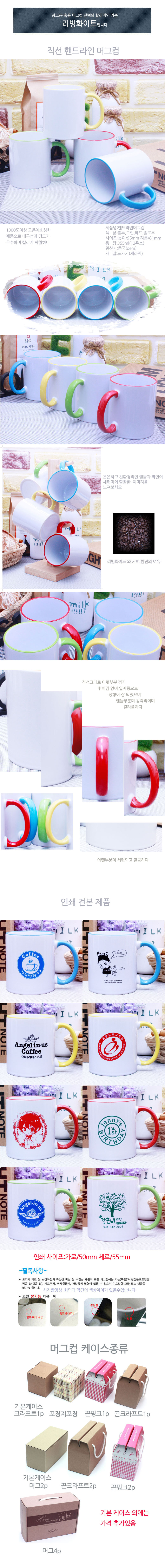 | 기타사항 | 머그 + 기본케이스 + 실크1도단면 포함 기본수량 이하인쇄시 기본인쇄비 별도문의 전사인쇄 별도문의 선물포장,끈케이스 1p,2p,4p 가능-별도문의 |