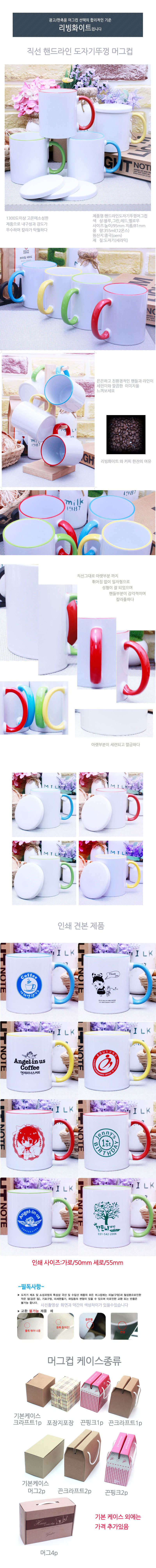 | 기타사항 | 머그 + 기본케이스 + 실크1도단면 포함 기본수량 이하인쇄시 기본인쇄비 별도문의 전사인쇄 별도문의 선물포장,끈케이스 1p,2p,4p 가능-별도문의 |