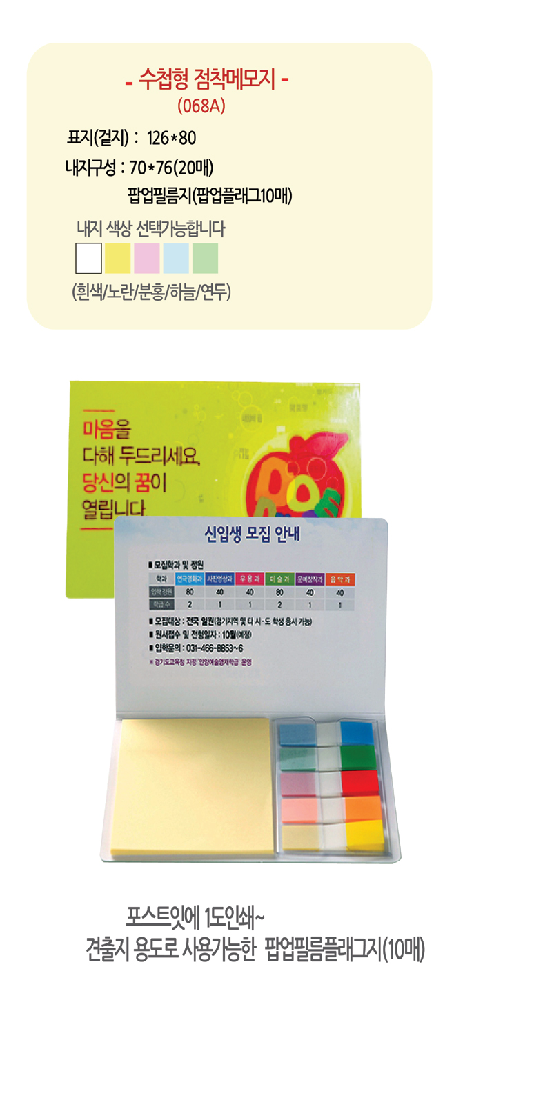 | 색상 | 포스트잇색상 : 흰색/노란/분홍/연두/하늘 |