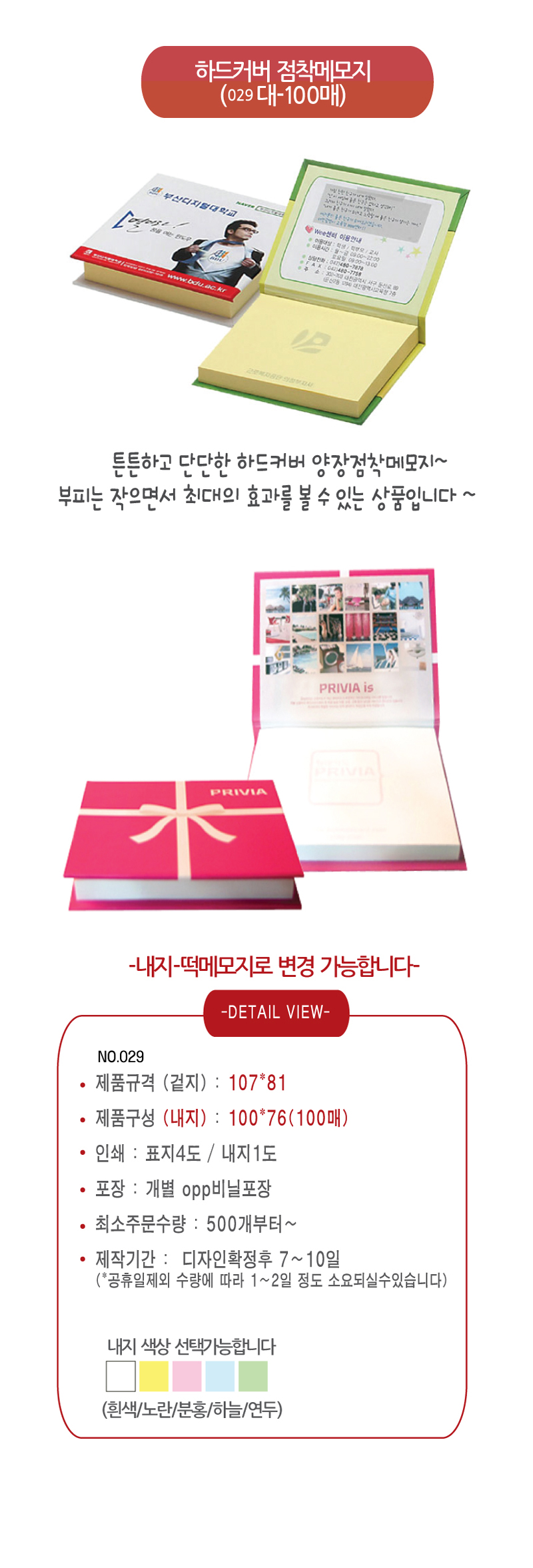 | 색상 | 포스트잇색상 : 흰색/노란/분홍/연두/하늘 |