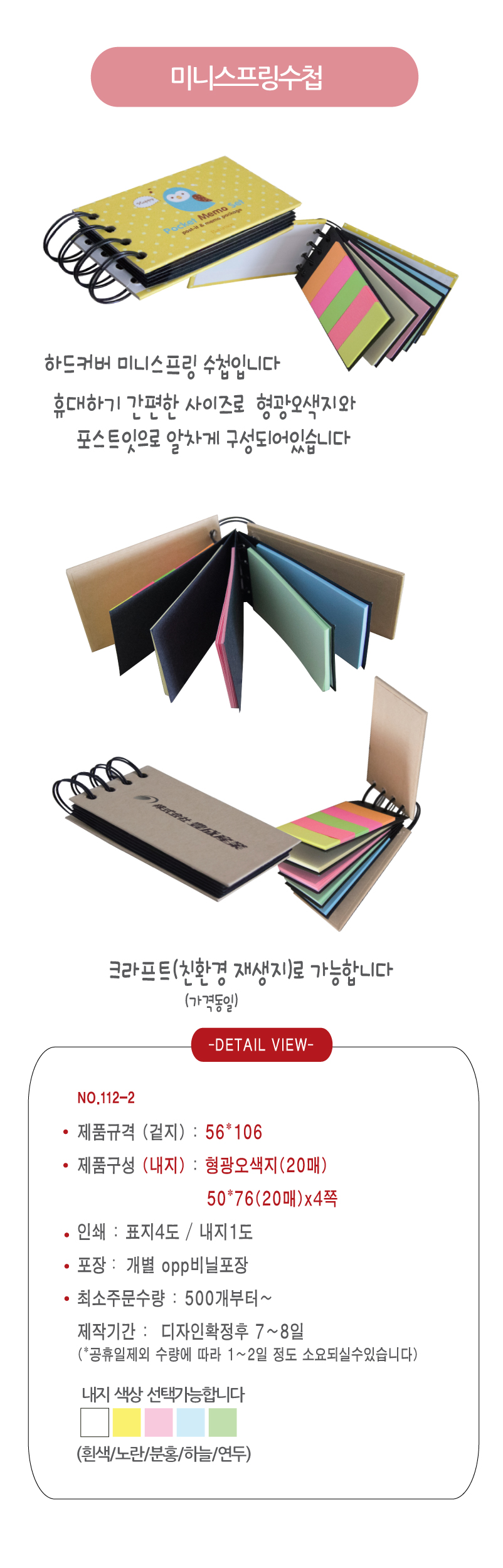 | 색상 | 포스트잇색상 : 흰색/노란/분홍/연두/하늘 |