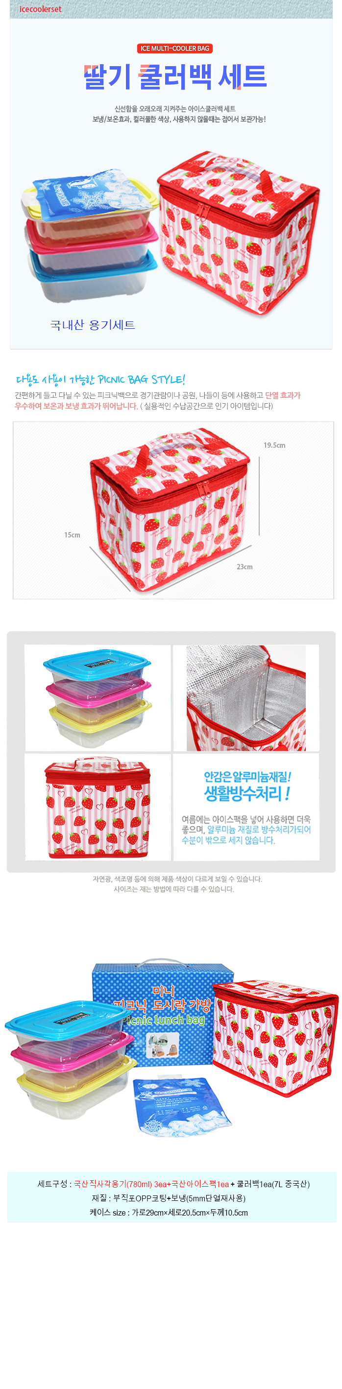 | 제품구성 | 딸기쿨러백1ea+용기세트3ea+아이스팩1ea+개별종이케이스1ea |
