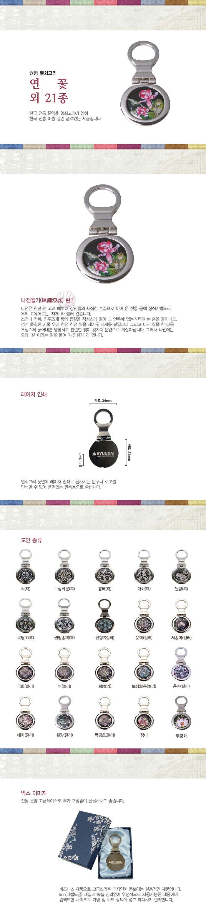 | 재질 | Iron(니켈도금),천연자개(에폭시코팅) |