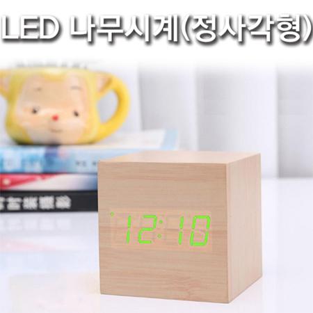 우드타입 LED 탁상용 미니시계(그린)/정사각/알람