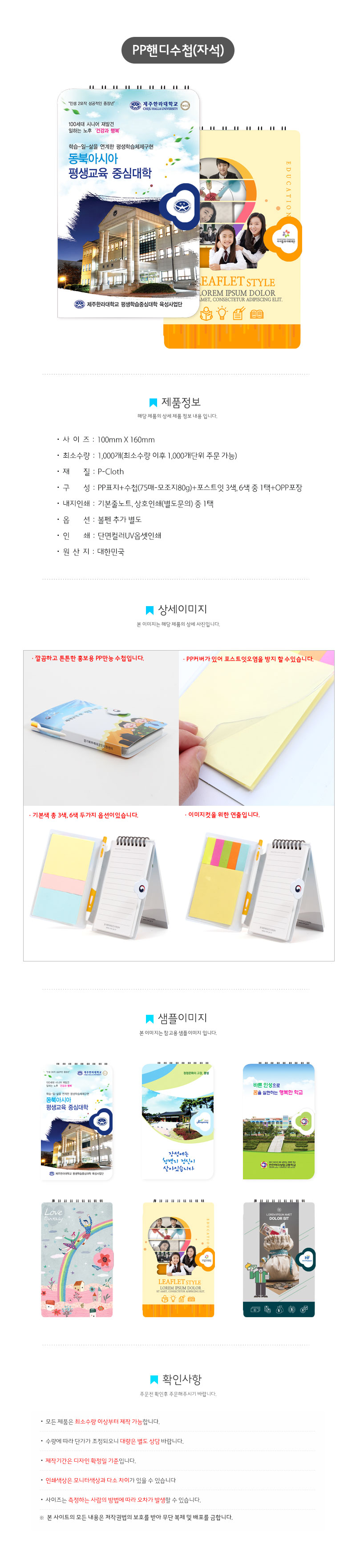 | 재질 | PP / 수첩 : 모조지 80g / 포스트잇 |