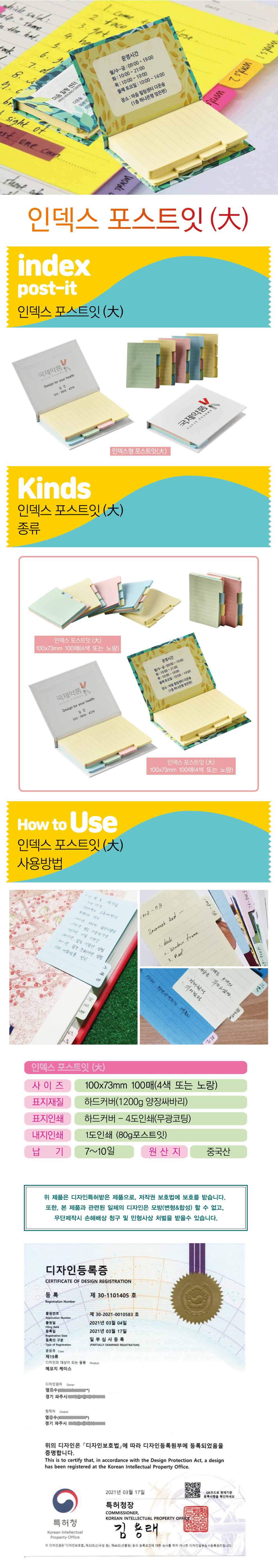 | 색상 | 포스트잇색상 : 흰색/노란/분홍/연두/하늘 |
