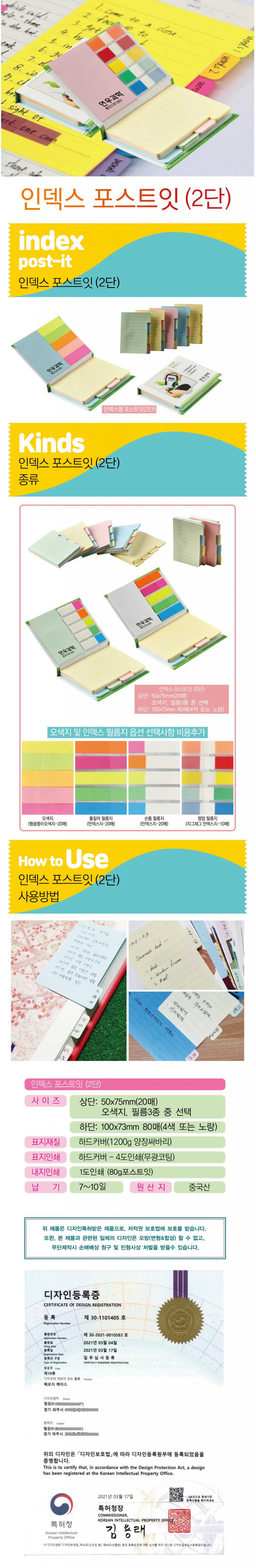 | 색상 | 포스트잇색상 : 흰색/노란/분홍/연두/하늘 |