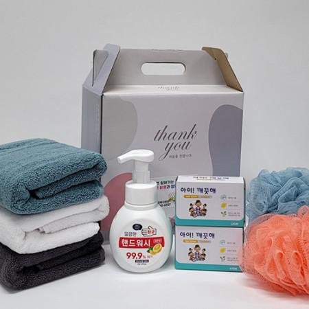 | 제품구성 | 깔끔한 핸드워시 300㎖ 1개, 아이 깨끗해 비누 2개, 송워타올 1개, 샤워볼 1개, 선물상자 |
