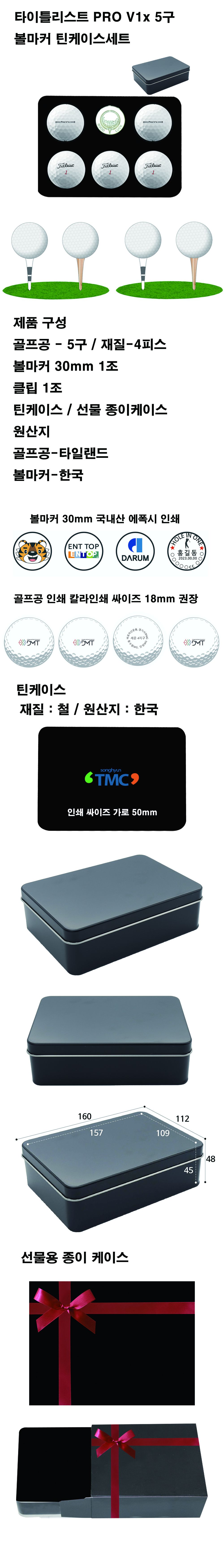 타이틀리스트 PRO V1x 5구 볼마커 틴케이스세트