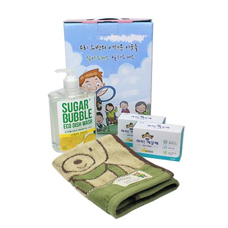 어려운이웃 홍보물 슈가버블 주방세제 490+기라로쉬 울리 주방타올+아이깨끗해 비누 2개 (케이스 이미지 변경 가능)