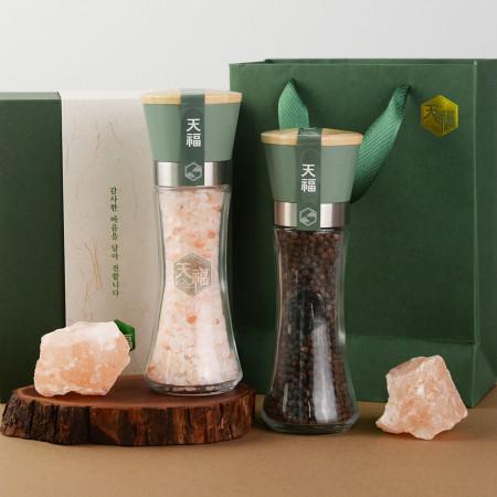 | 제품구성 | 그라인더 240 2EA(핑크솔트 굵은입자 240G, 블랙페퍼 통후추 110G) |
