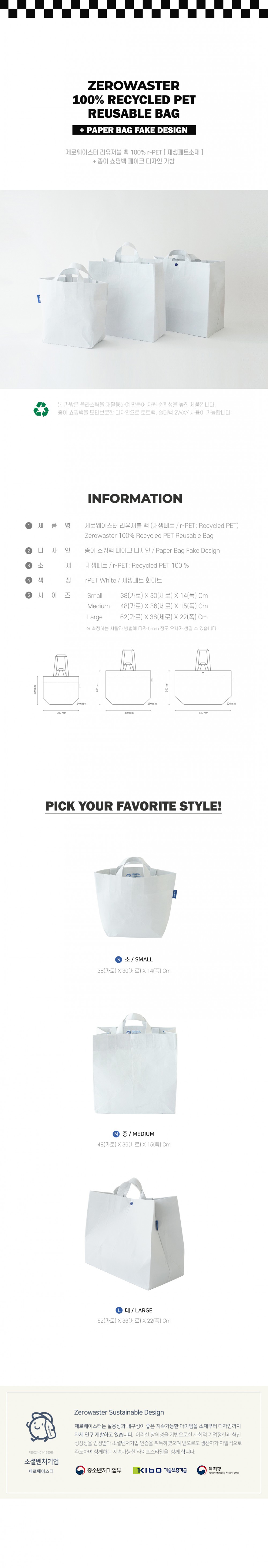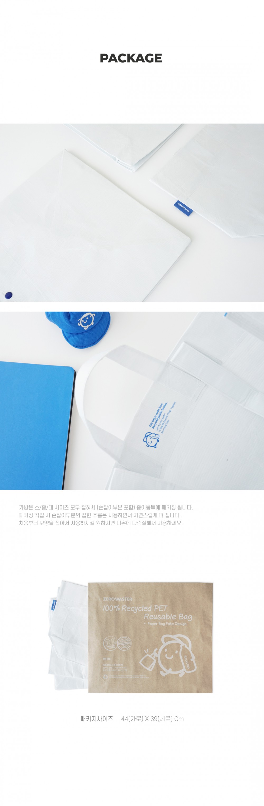 | 제품구성 | r-PET백 3개 + 종이패키지 |