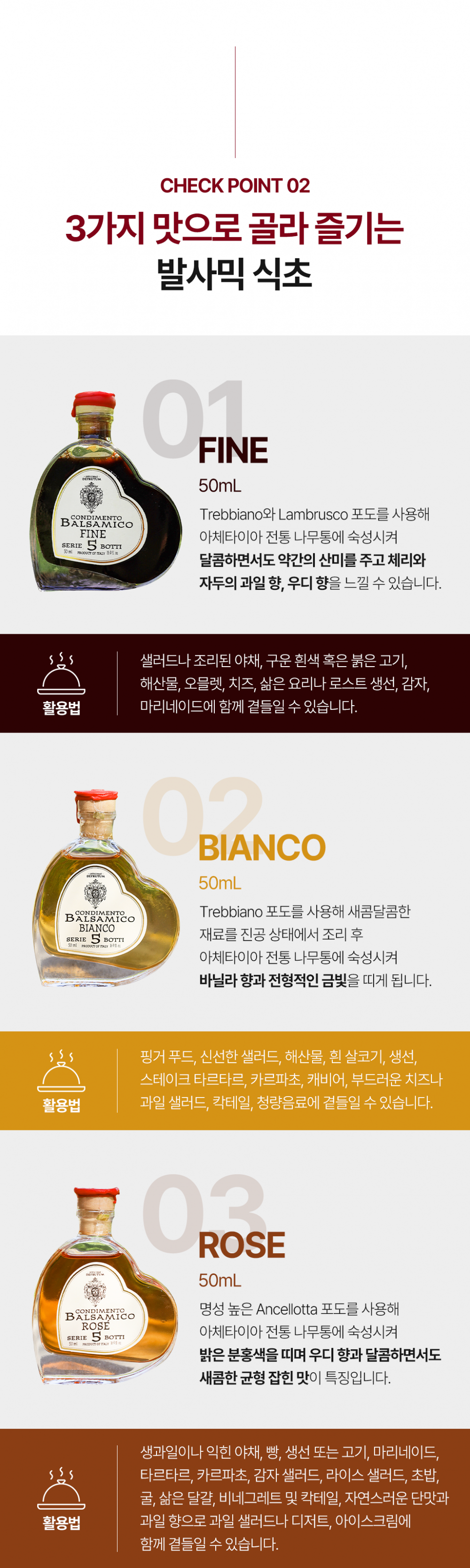 파인, 로제, 비앙코 이렇게 3가지 새콤달콤한 맛이 있으니, 취향별로 드셔 보세요~