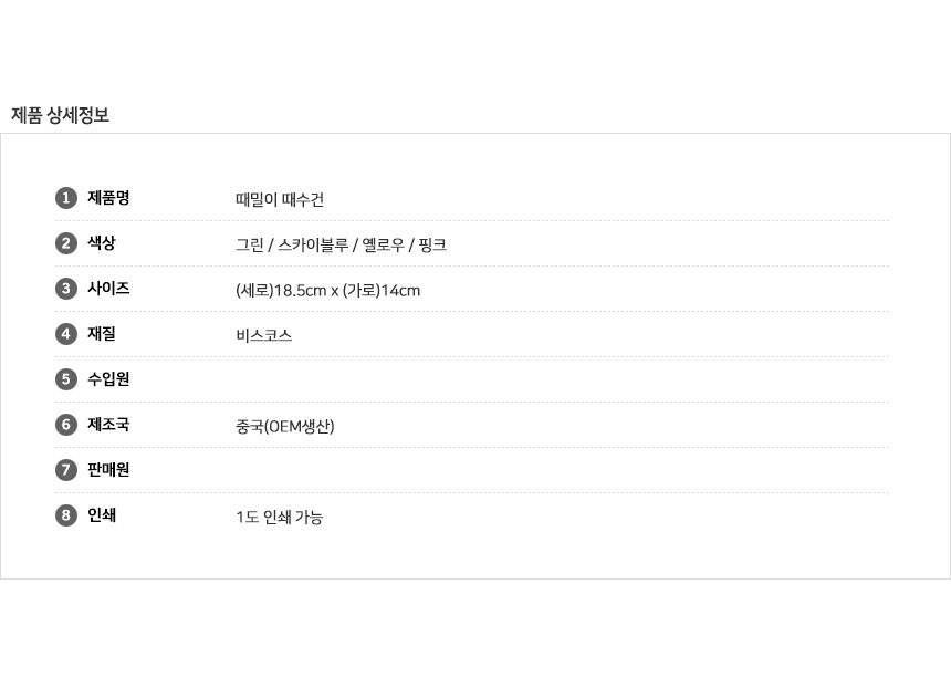 | 제품구성 | 때밀이 타올 |