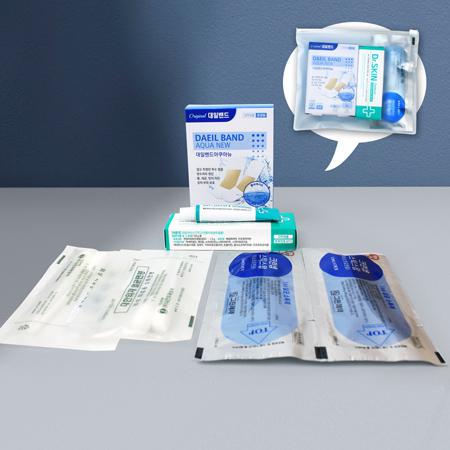 | 제품구성 | 대일밴드 아쿠아 방수밴드 표준형 8매 대형4매 + 닥터스킨 상처연고 + 스팃스왑 2매 + 멸균면봉2매입 2개 + 지퍼백 |
