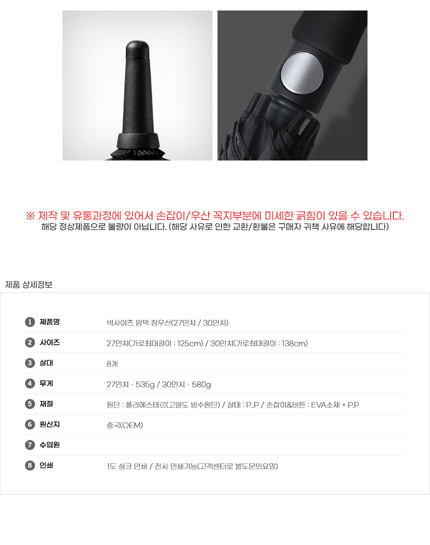 | 제품구성 | 27인치 자외선차단 빅사이즈 암막 장우산 |