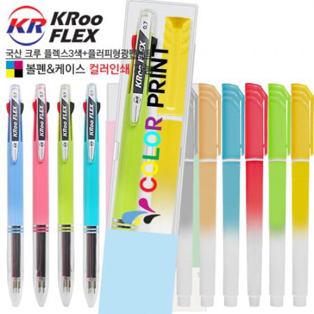 국산 크루 플렉스3색+플러피형광펜세트 (컬러인쇄가능)