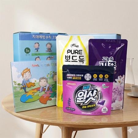 | 기타사항 | 치매예방 홍보 주방위생장갑 50매 + 슈가버블 버블원샷 캡슐세제 + 피죤 퓨어 주방세제 + 피죤 섬유유연제 + 치매예방 홍보케이스+케이스 이미지 변경 가능 스티커 제작 및 부착 별도문의 케이스 이미지 변경 가능, 상세페이지 참조 (무지케이스 / 어려운이웃 복지사각 / 치매예방 / 금연홍보 / 슬기로운 안전생활) |