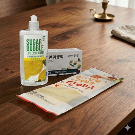 | 기타사항 | 슈가버블 주방세제 + 크린 위생백 100매 + 단미니고무장갑 + 끈케이스 스티커 제작 및 부착 별도문의 케이스 실크1도인쇄 별도문의 |